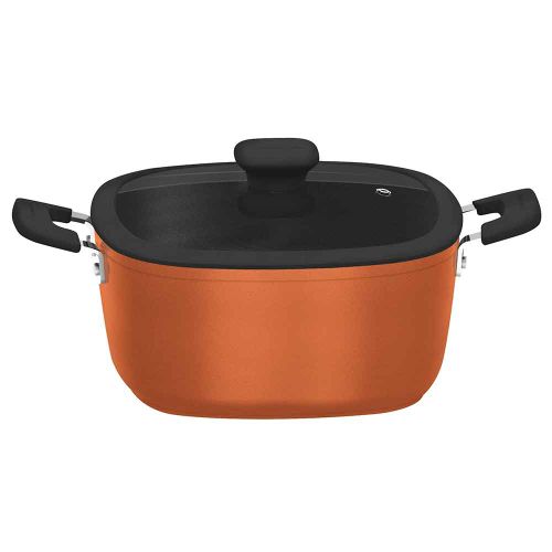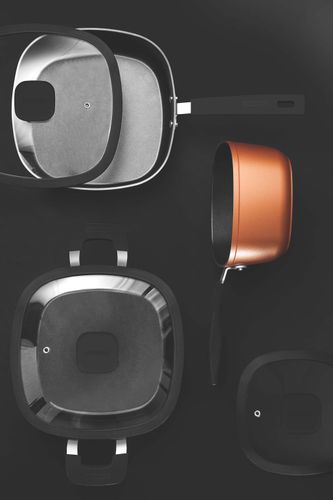 Las cacerolas de la línea Reffinatta sorprenden con su moderno diseño. Su forma cuadrada con revestimiento externo de silicona en color bronce o rojo combina a la perfección con todos los formatos de cocina. El modelo Starflon T3 es el único con tecnología T. Cuenta con más poder de antiadherencia; resistencia a la abrasión; durabilidad y mayor facilidad de limpieza. Incluye asas de acero inoxidable con protección de silicona y agarrador de baquelita con revestimiento soft-touch.